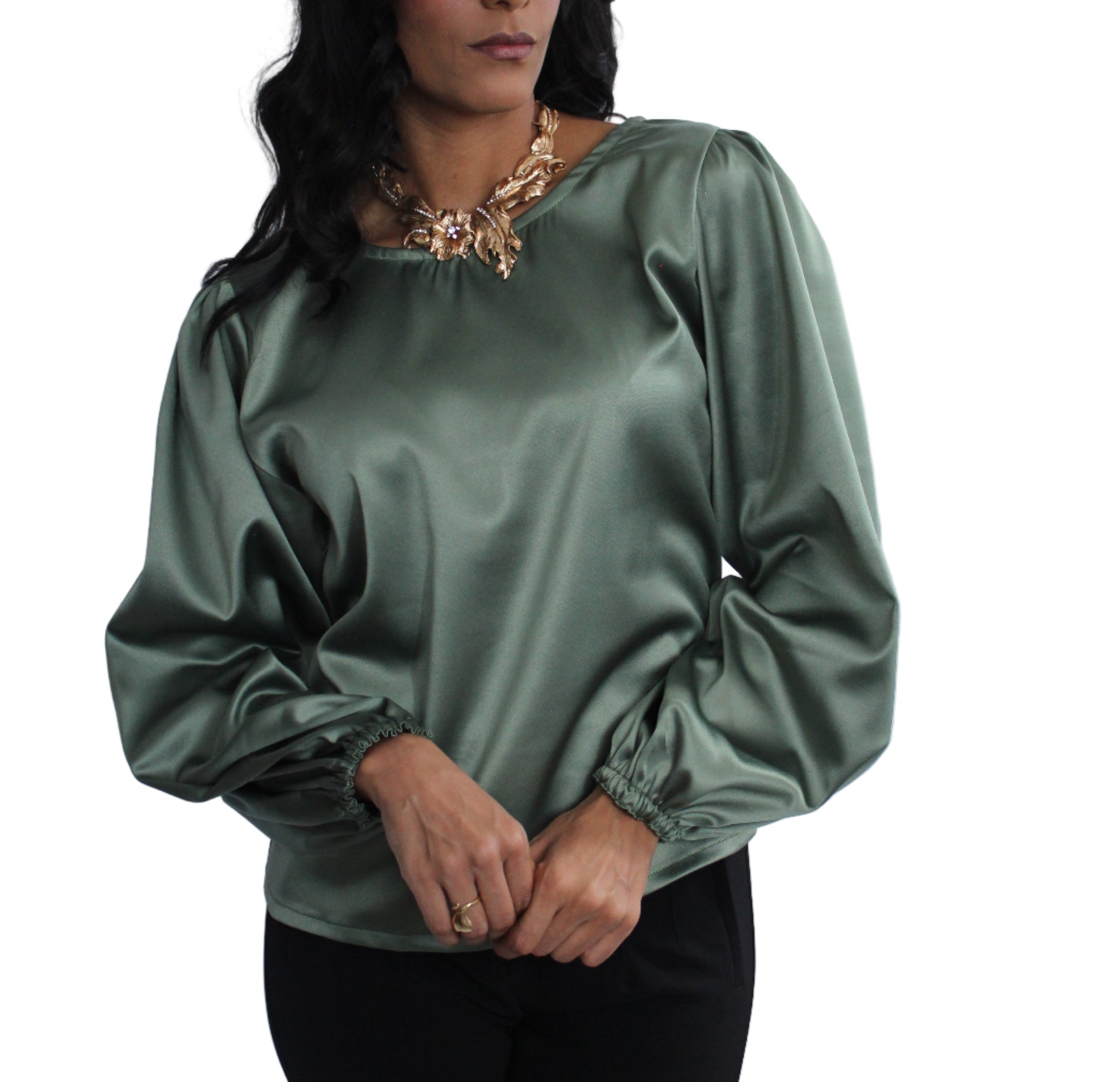 SATIN BLOUSE en verde